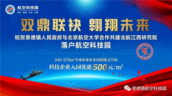 景德镇市人民政府与北京航空航天大学达成战略合作意向,双方决定共建北航江西(景德镇)研究院,围绕航空智能制造、航空复合材料等重点研究方向,推进军民融合人才培养,培育一批高新技术成果,全力打造“国内一 流