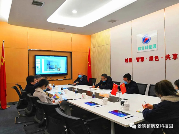 2020年4月10日,中国船舶海丰通航马岩总经理一行,莅临航空科技园考察调研。景翔科创董事长胡森立、副总经理林志新热情接待,并就项目情况做了详细介绍。在了解了航空科技园项目发展规划及产品设计理念后,马