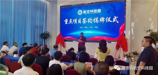 2019年8月2日下午,航空科技园重点项目签约揭牌仪式在航空科技园服务中心举行。高新区党工委委员管委会副主任邱晨阳、高新区调研员朱晓琴、高新区副调研员姜红斌、高新区科技局局长邹媛、高新区人社局局长徐惠