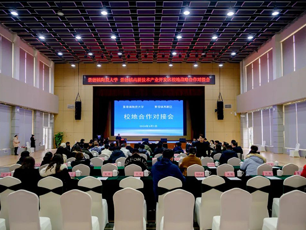 3月1日, 景德镇陶瓷大学与景德镇高新技术产业开发区校地合作对接会在高新区多功能报告厅隆重举行,景德镇陶瓷大学党委书记李良智出席并讲话,景德镇市政府副市长、高新区党工委书记罗文军致辞,并与景德镇陶瓷大
